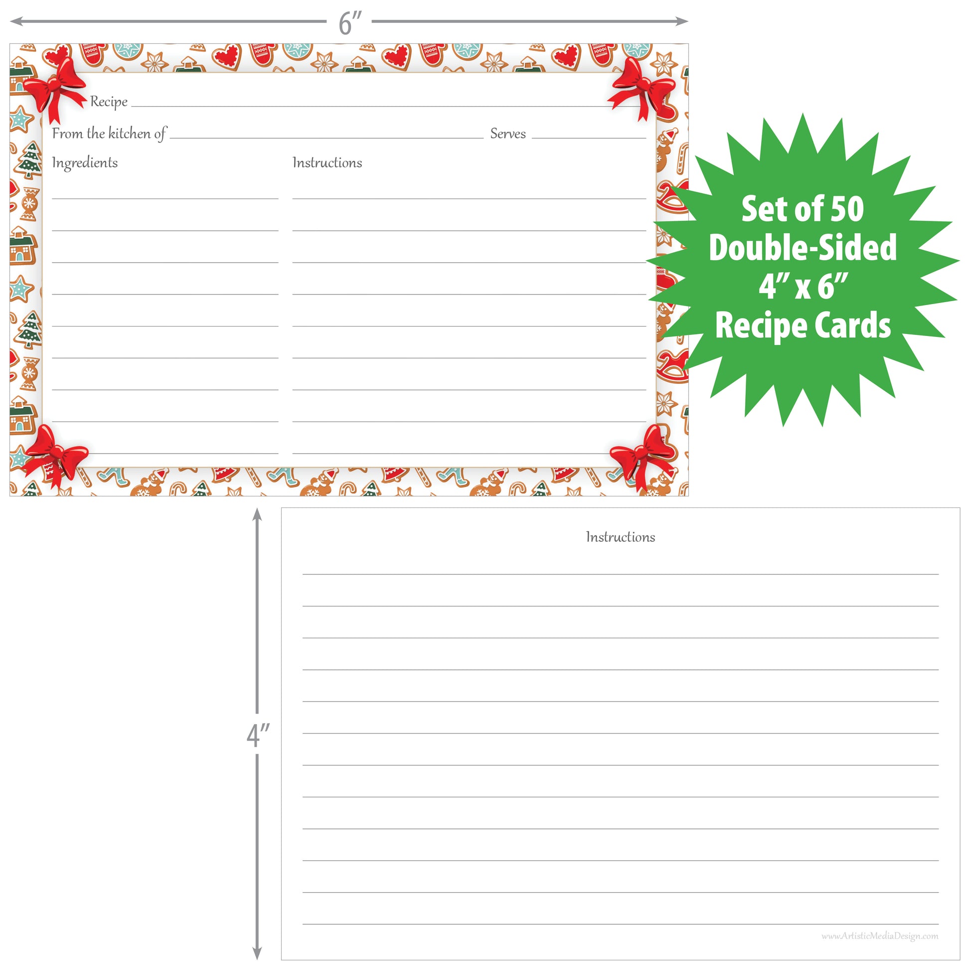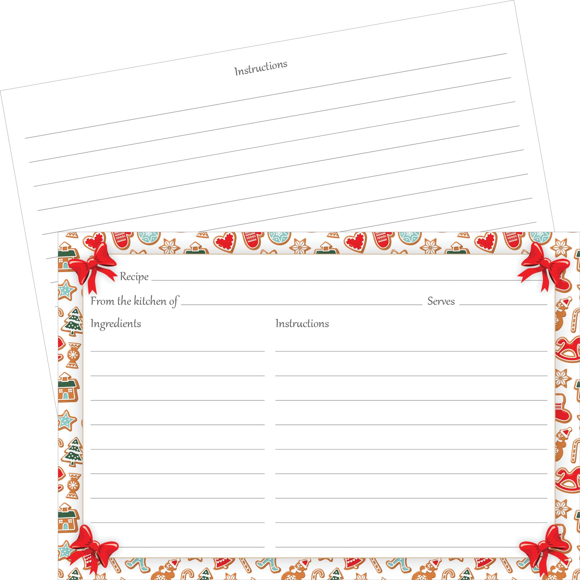 Christmas Cookie Recipe Cards (Set of 50) | 4" x 6" Double-Sided College-Ruled