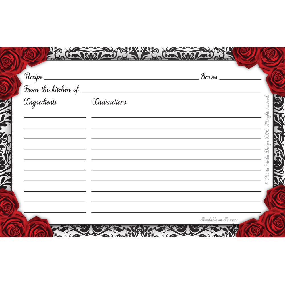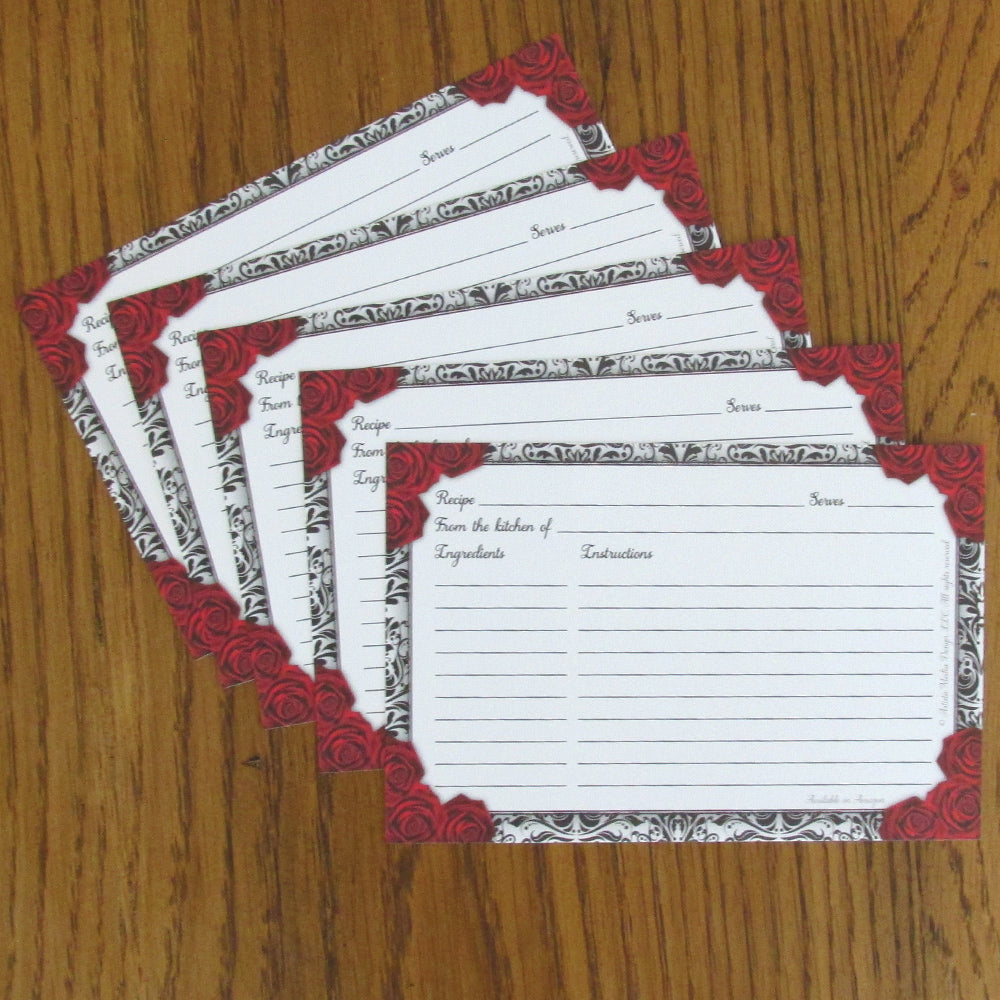 Clearance - Romantic Red Rose and Black Damask Recipe Cards (Set of 50) | 4" x 6" One-Sided