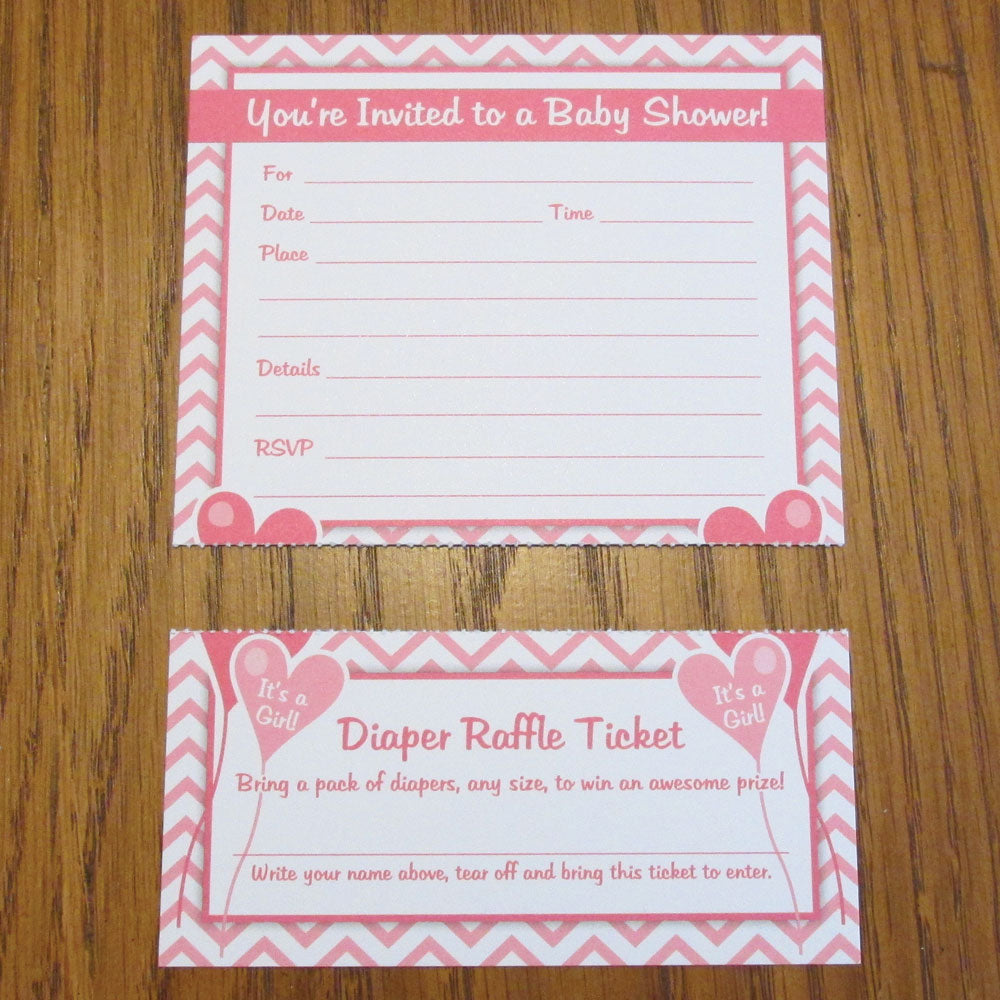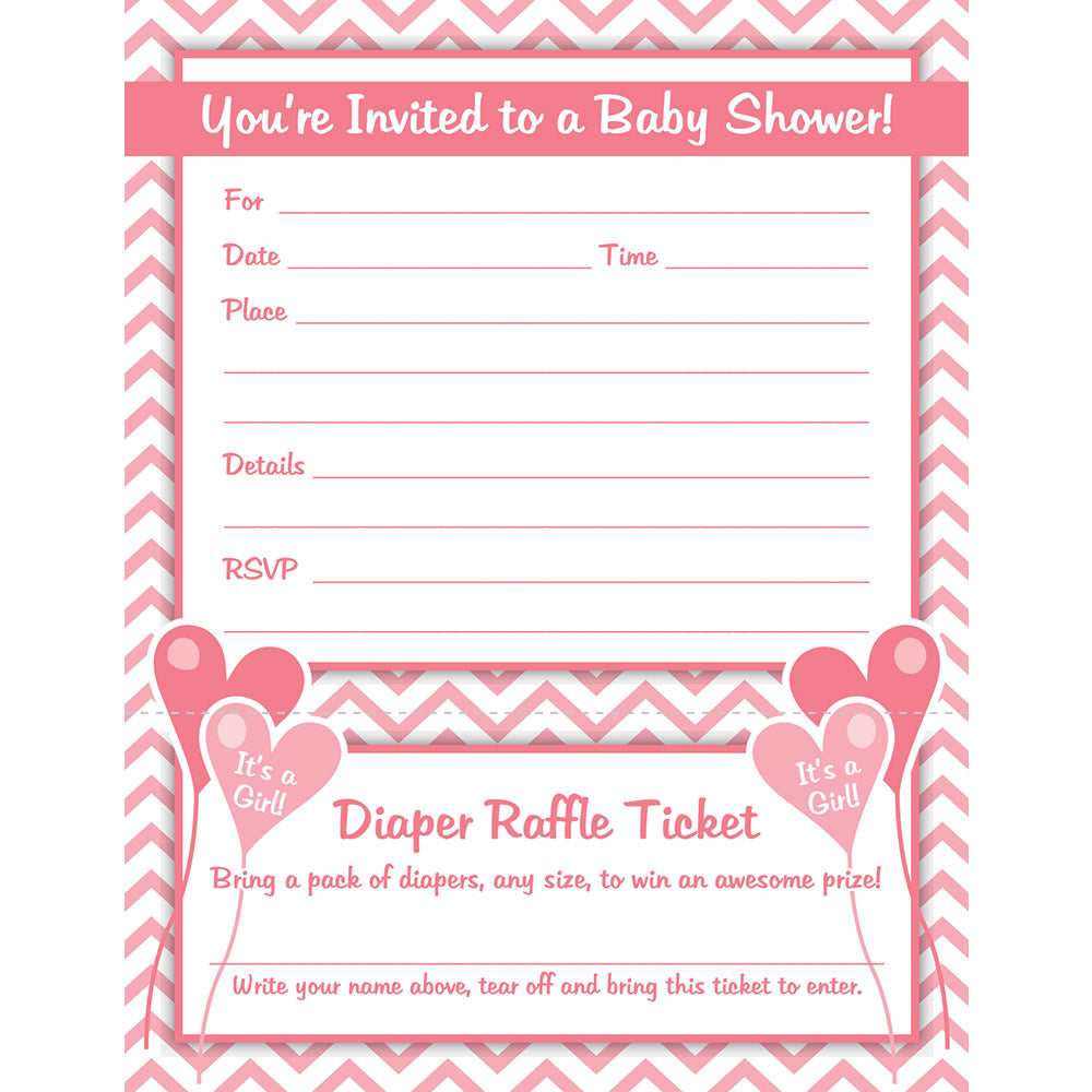- "It's a girl!" fill-in-the-blank baby shower invitations with perforated tear-off diaper raffle tickets (set of 25 with envelopes)