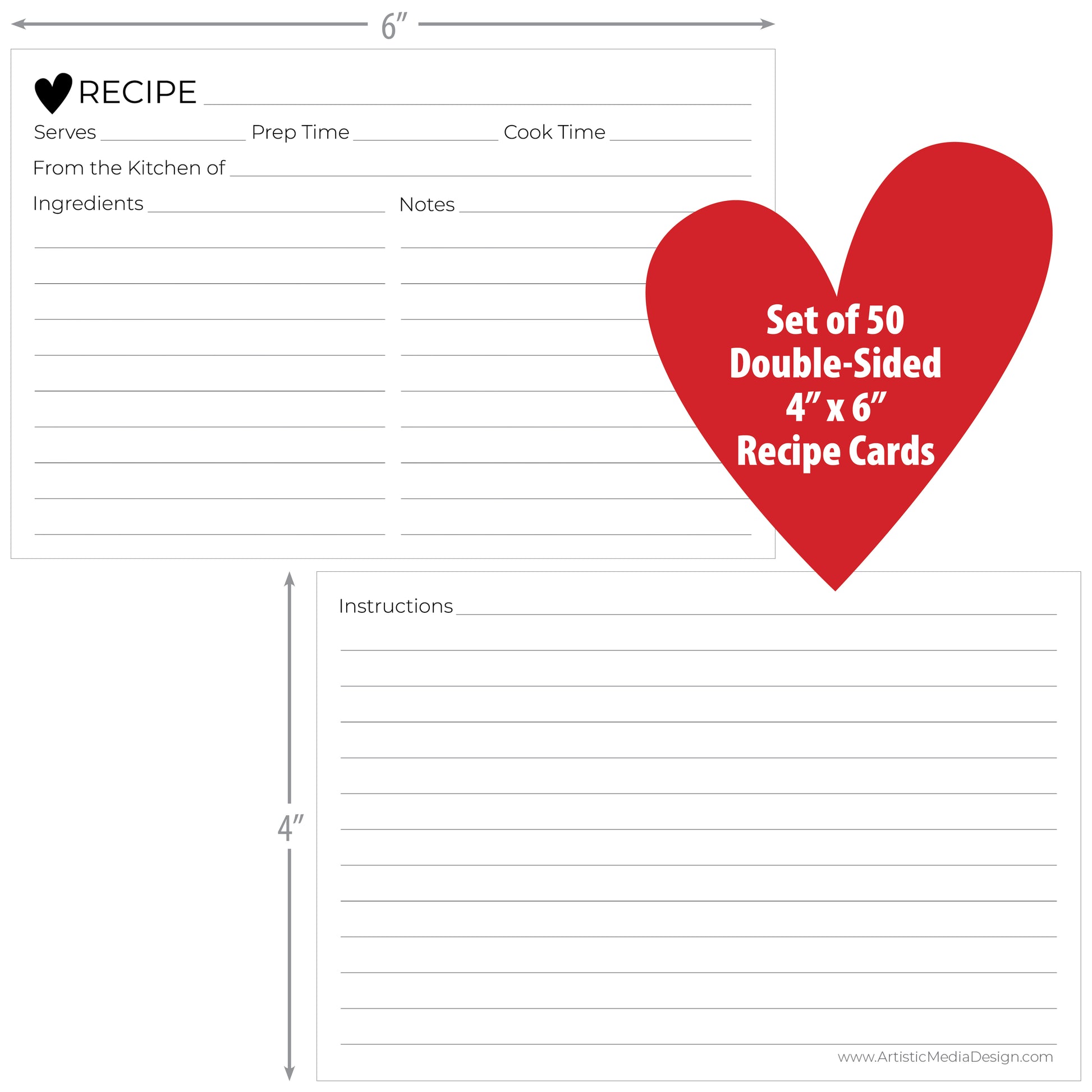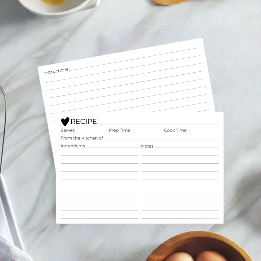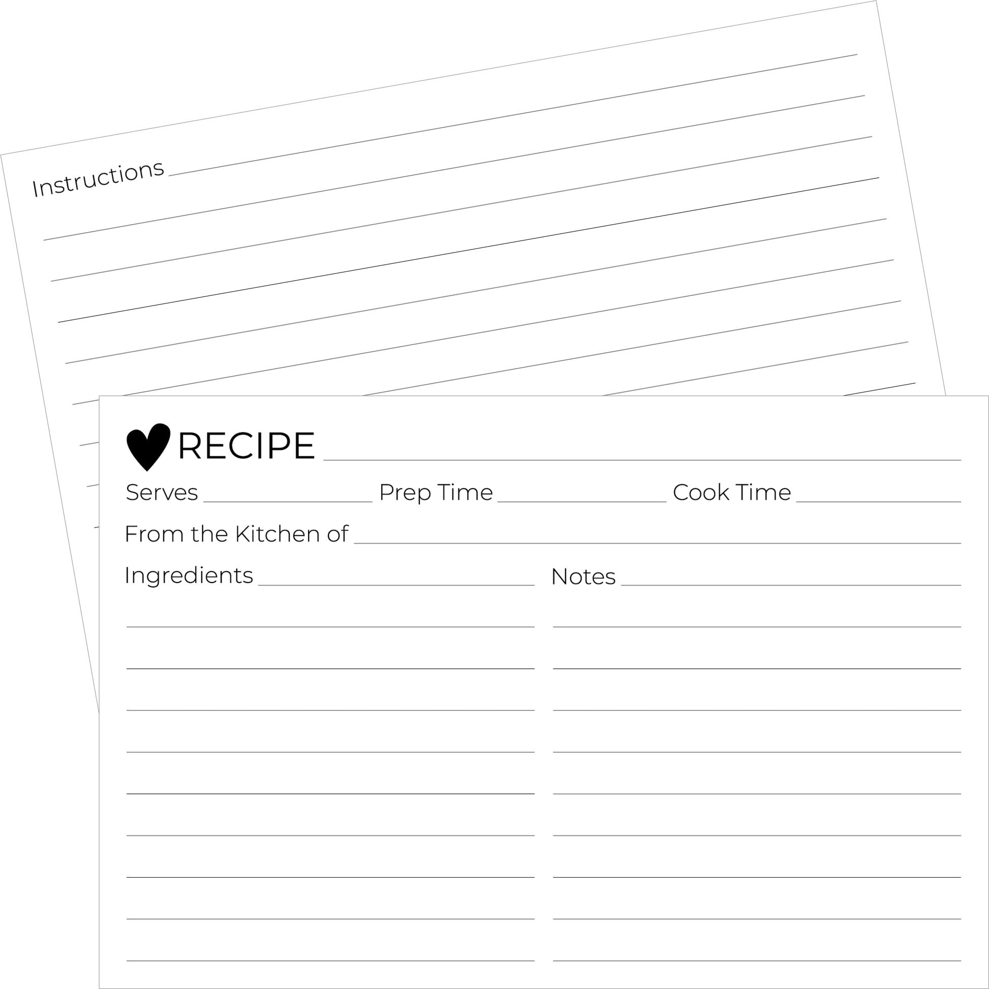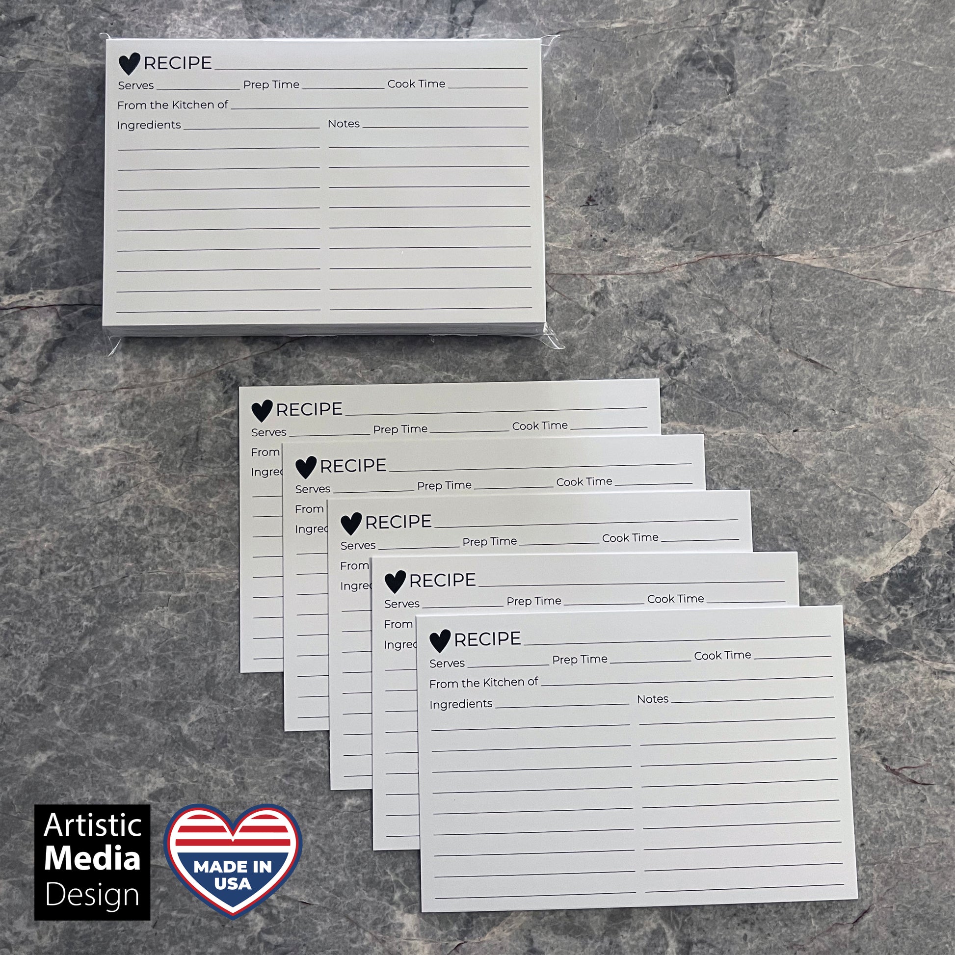 Recipe Cards - Minimalist Heart Design (Set of 50) | Classic Black & White | 4" x 6" Double-Sided Heavyweight Stock for Bridal Showers & Recipe Exchanges