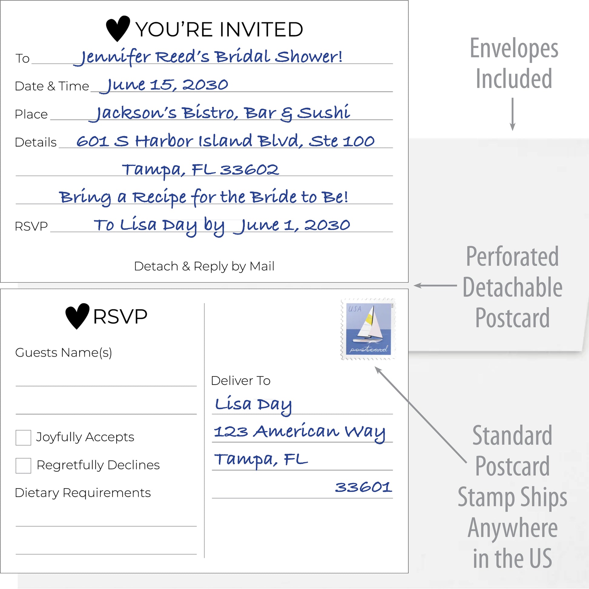 - Convenient Tear-Off RSVP Postcard: Each invitation features a perforated RSVP postcard, making it easy for your guests to respond promptly.